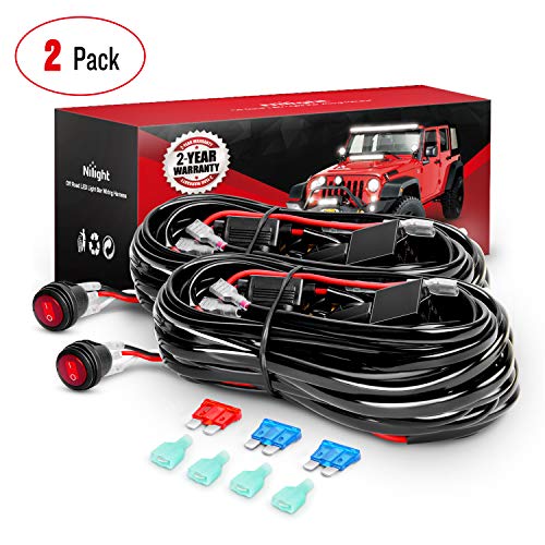 Nilight 2PCS LED Light Bar Wiring Harness Kit 16AWG 12V On Off Waterproof Switch Power Relay Blade Fuse-2 Lead,2 Years Warranty