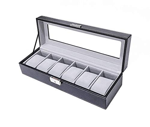 Sodynee Watch Box Large 6 Mens Black Pu Leather Display Glass Top Jewelry Case Organizer