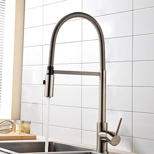 VAPSINT Hihg-arch Stainless Steel Single Handle Single Hole Touch On Brushed Nickel Pull Out Pull Down Sprayer Spring Kitchen Sink Faucet,360 Degree Swivel Spout Hot and Cold Water Mixture Faucet