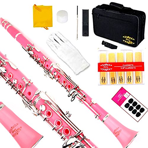 Glory B Flat Clarinet with Second Barrel, 11reeds,8 Pads Cushions,case,carekit and More -Pink with Silver Keys