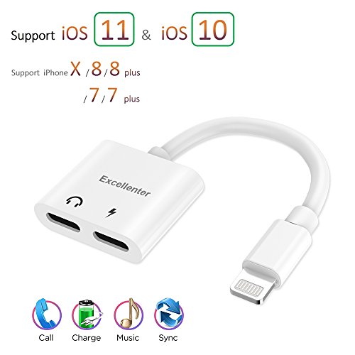 Palytte QM-PST1650-A Compatible Adapter & Splitter Replacement for iPhone 7/7 Plus/8/8 Plus/X, Headphone 8 Pin Jack Aux Audio & Charging & Calling & Sync Cable Connector Earphone Charger, White