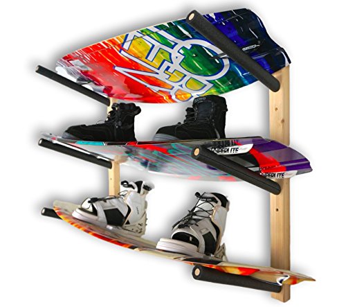StoreYourBoard Wakeboard Wall Rack, Basic Wood Wakeboard Rack, 3 Boards
