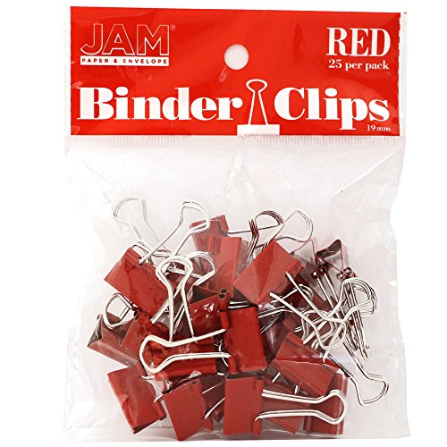 JAM PAPER Colorful Binder Clips - Small - 3/4 Inch (19 mm) - Red Binderclips - 25/Pack
