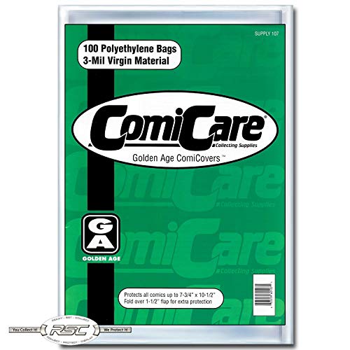 ComiCare Golden Age Comic Book Polyethylene Bags 7-3/4" x 10 1/2" Plus 1 1/2" Flap