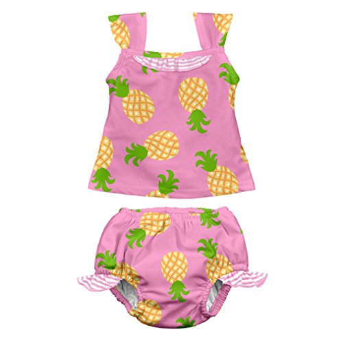 i play. Baby Girls' Tankini Set with Built-In Swim Diaper, Aqua, 12 Months