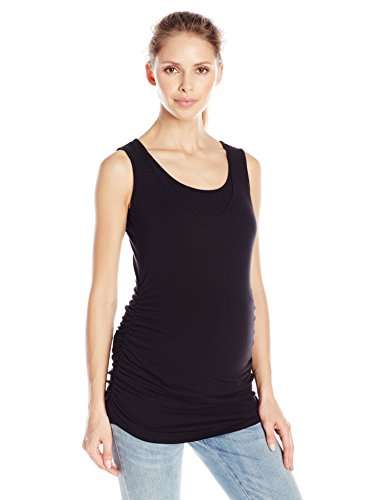 Maternal America Women's Maternity Belly Ruched Nursing Tank Top, Black, X-Large