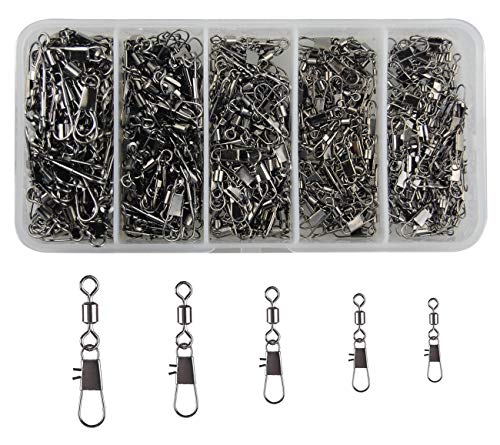 JSHANMEI 300pcs/lot Fishing Swivel Snaps Copper & Stainless Steel Rolling Swivel Interlock Snap Lure Connectors Accessories Fishing Tackle Box Kit Size 2,4,6,8,10