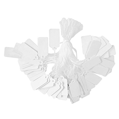 Pandahall 500pcs White Jewelry Price Tags Clothing Display Tag Gift Message Card Writable Rectangle Paper Price Marking Label Design Blank with Hanging String 23x13mm/0.9x0.5 Inch