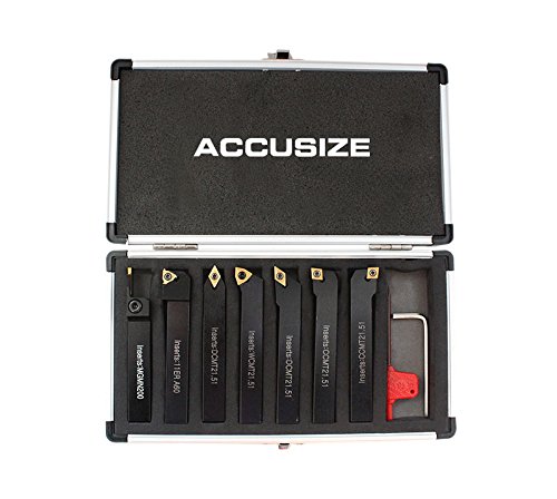 Accusize Industrial Tools 7 Pieces/Set 1/2'' Indexable Carbide Turning Tool Set in Fitted Box, 2387-2004