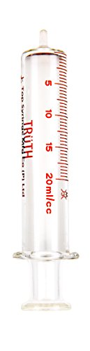 TRUTH 01-10-01-08 Borosilicate Glass Slip Tip Reusable Syringe, 20 mL Capacity, 2 mL Graduation