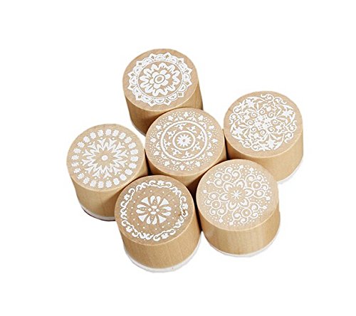 MelifeĀ® 6Pcs Assorted Vintage Floral Pattern Round Wooden Rubber Stamp Scrapbook