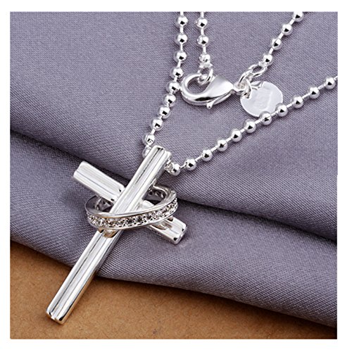 NYKKOLA Jewellery Beautiful Fashion 925 Silver Cross Pendant Bead Chain Necklace Gift