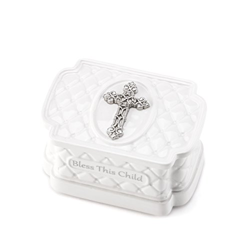 DEMDACO Bless This Child Classic White Dolomite Children's Keepsake Box with Rosary