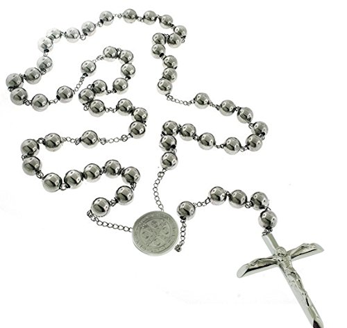 Catholic Rosary Beads Pray Necklace Stainless Steel Saint Benedict Medal-28 6MM,24" 6MM OR 18" 4MM Saint Benedict Rosary