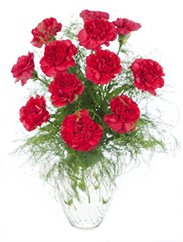 Ravishing 12 Red Carnations Bouquet with Greens from KaBloom, With Vase