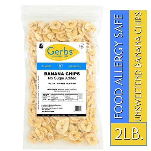 Gerbs Banana Chips Unsweetened, 2 LBS – Unsulfured & Preservative Free - Top 14 Allergy Friendly & NON GMO - Product of Philippines