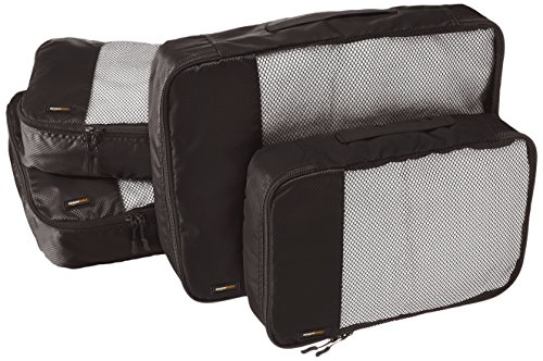AmazonBasics 4-Piece Packing Cube Set - 2 Medium and 2 Large, Black and Gray