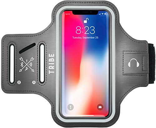 TRIBE Water Resistant Cell Phone Armband Case for iPhone X, Xs, 8, 7, 6, 6S Samsung Galaxy S9, S8, S7, S6, A8 with Adjustable Elastic Band & Key Holder for Running, Walking, Hiking