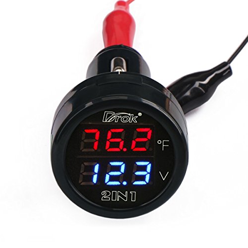 DROK 180038 Digital Voltage 10-170 ℉ Temperature Monitor Tester Multimeter Car Motorcycle Battery Voltmeter Thermometer Detector