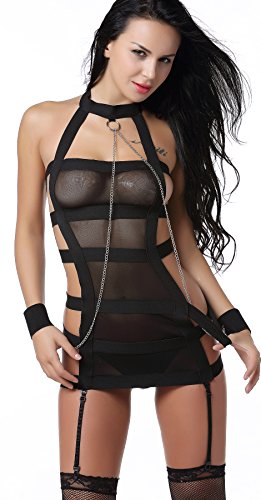The Victory of Cupid Black Transparent Miniskirt Bundle, Iron Handcuffs, Black, OS