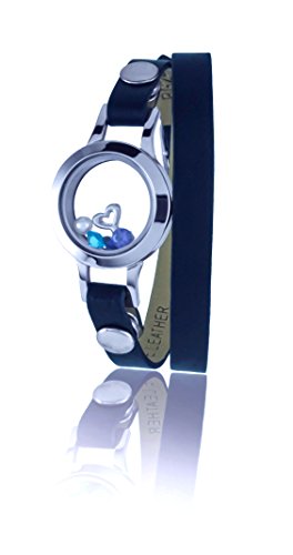 BG247 Stainless Steel Twist Floating Locket with Choice of 6 Mini Charms and 3 Leather Wrap Bracelets Set