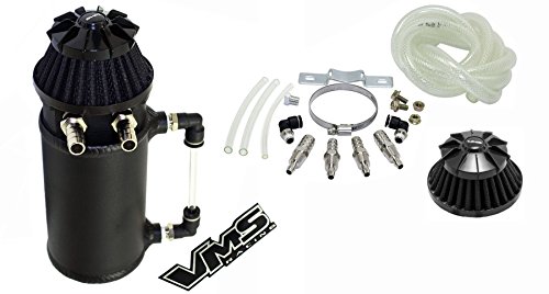 VMS Racing Universal Matte BLACK Aluminum OIL Reservoir CATCH CAN Canister Tank with Breather (Complete Kit)