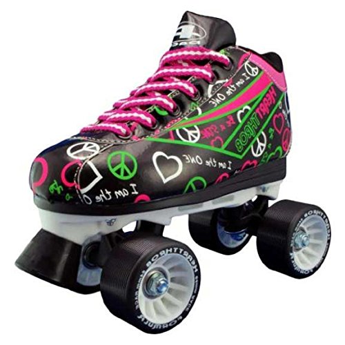 Pacer Black & Neon Heart Throb Quad Roller Speed Skates with Bonus 3 Pr. Laces (Ladies 7 / Mens 6)