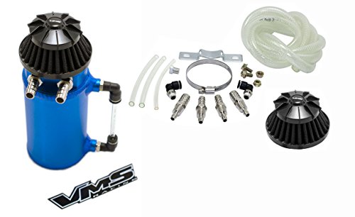 VMS Racing Universal Matte BLUE Aluminum OIL Reservoir CATCH CAN Canister Tank with Breather (Complete Kit)