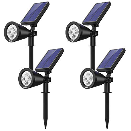 AMIR Solar Spotlights, Upgraded Solar Garden Light Outdoor, 360° Adjustable 4 LED Landscape Lighting, Waterproof Solar Wall Light, Auto On/ Off for Yard Driveway Pathway Pool Patio (2 Pack, Warm White)