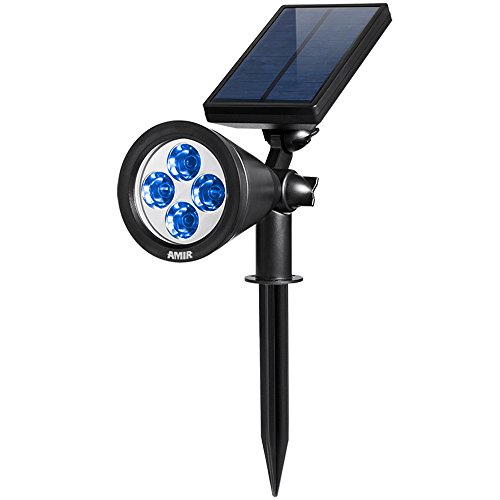 AMIR 2 in 1 Solar Spotlights, Upgraded Solar Garden Lights Outdoor, Waterproof 4 LED Landscape Lighting, Adjustable Solar Wall Lights with Auto On/ Off for Yard Driveway Pathway Pool Tree Patio (Blue)