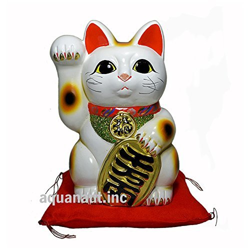 Tokoname Ware 9.1'' White Maneki Neko Right Hand with Zabuton Cushion