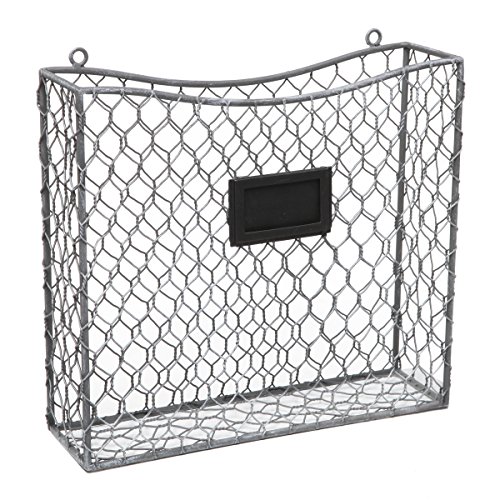 Country Rustic Gray Metal Wire Wall Mounted Magazine, File & Mail Holder Basket w/Chalkboard Label