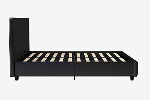 DHP Dakota Upholstered Faux Leather Platform Bed with Wooden Slat Support and Tufted Headboard and Footboard, Queen Size - Black