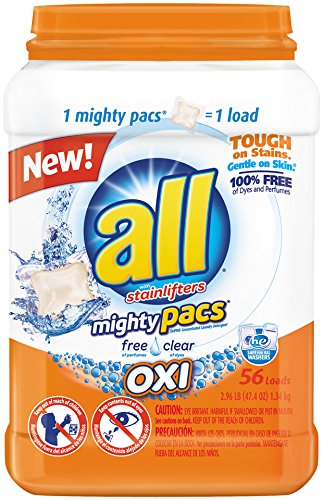 all Mighty Pacs Laundry Detergent with OXI Stain Removers and Whiteners, Free Clear, Pouch, 56 Count