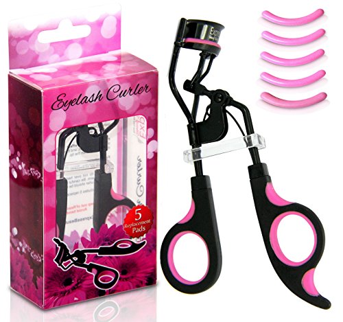 Express Beauty Boutique Eyelash Curler Curling Set with Silicone Refill Replacement Pads Pink, 5pc