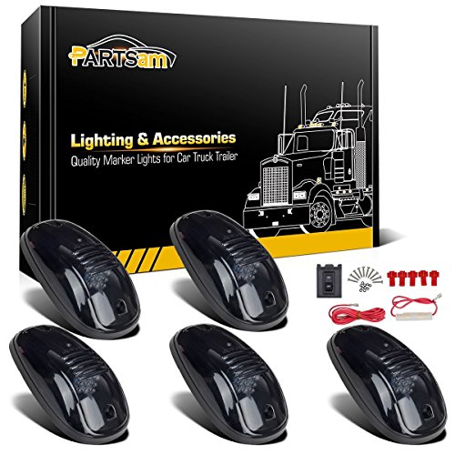Partsam 5X Smoke Cover Amber LED Roof Cab Marker Light Assembly + Wiring Pack Compatible with Dodge Ram 1500 2500 3500 4500 5500 2003-2018 Pickup Trucks