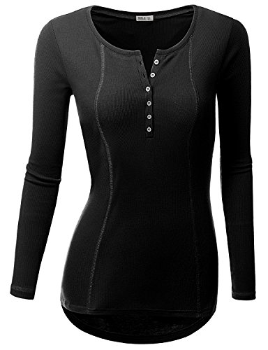 Doublju Basic Thermal Henely T-Shirts for Women with Plus Size Black X-Large