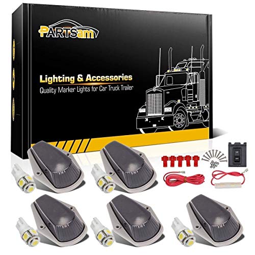 Partsam 5X Smoke Cab Marker Light Roof Running Top Lamp + T10 168 5050 White LED Bulbs + Wiring Pack Compatible with Ford F-150 F-250 F-350 1973-1997 F Series Super Duty Pickup Truck