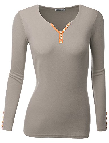 Doublju Women Lightweight Button Point Long Sleeve Big Size Tees GRAYORANGE,2XL