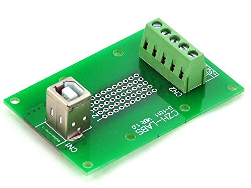 Electronics-Salon USB Type B Female Vertical Jack Breakout Board, Terminal Block Connector.