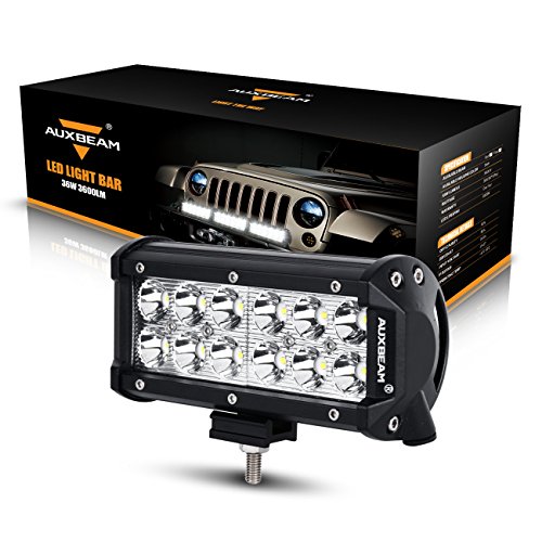 Auxbeam 7 Inch LED Light Bar 36W LED Driving Light Spot LED Work Light Waterproof LED Lights for Trucks Car Pickup ATV Jeep Motorcycle Boat Golf Cart with Mounting Brackets