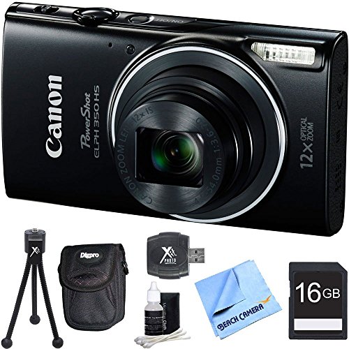 Canon Powershot ELPH 350 HS Digital Camera (Black) with 16GB SD Memory Card, Ultra-Compact Carrying Case, Hi-Speed SD USB 2.0 Card Reader, Flexible Mini Tripod + More