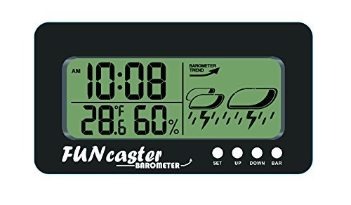 TecScan FUNcaster Barometer Ambient Weather Clock for Golf Cart, Boat, Home, Office Easy to See Time, Temp, Humidity, Forecast