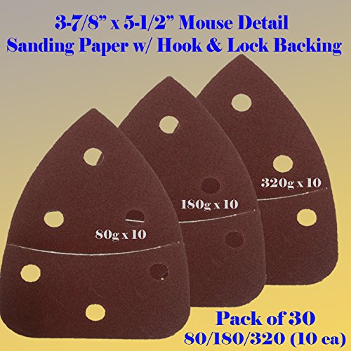 30 Assorted Mouse Detail Sander Sandpaper Sanding Paper Hook & Loop Assorted 60 80 120 180 240 320 Grits 5.5" X 3.875" Grit for Black & Decker, Craftsman, Ryobi Cat Mouse, Skil,