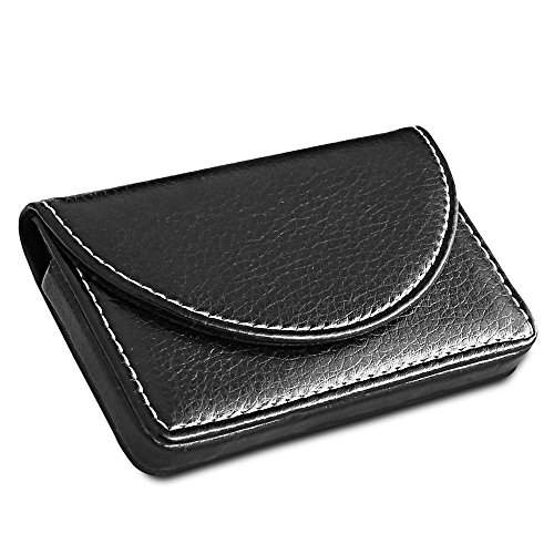 KINGFOM PU Leather Business Card Holder Name Card Case Credit Card Wallet Universal Card Holder with Magnetic Shut Black(Hold 25 pcs of cards)