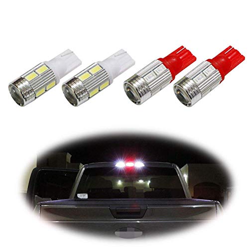iJDMTOY (4) High Power 10-SMD 921 912 920 168 T10 LED Replacement Bulbs For Chevrolet Ford GMC Honda Nissan Toyota Truck 3rd Brake Lamp (Two Xenon White, and Two Brilliant Red)