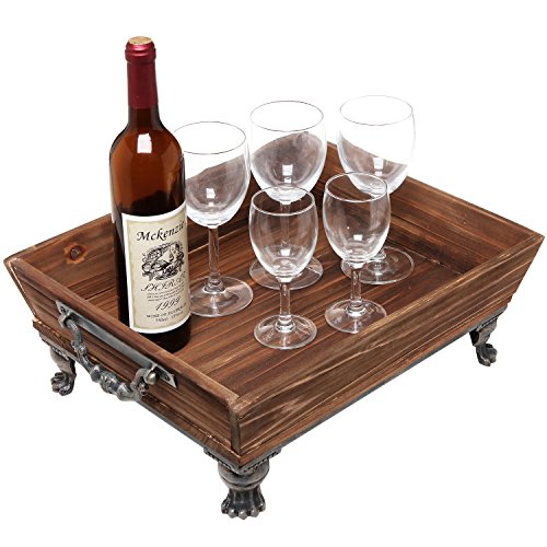Vintage Rustic Style Decorative Brown Wooden Centerpiece Storage Organizer / Display Tray w/ Metal Accent