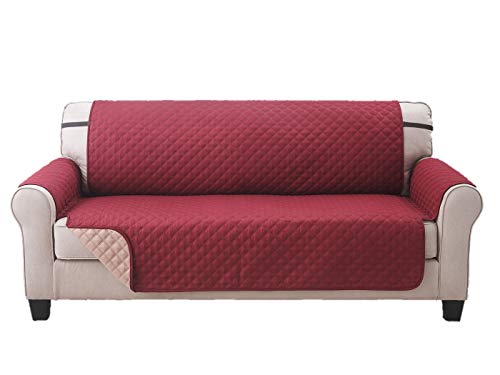 Elaine Karen Deluxe Original Reversible Couch Sofa Slipcover Furniture Protector, Quilted, Anti-Slip 2 Inch Strap, Machine Washable, Slip Cover Throw for Pets, Dogs, Cats, and Kids - Burgundy
