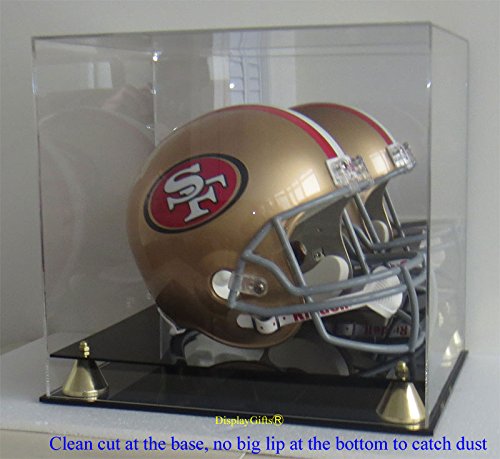 DisplayGifts PRO UV Football Full Size Helmet Display Case, Mirrored Back and Gold Risers MH15M