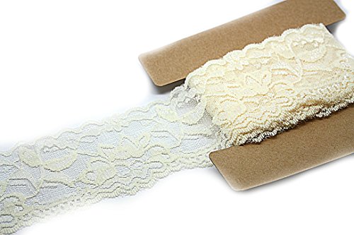 Stretch Lace Elastic - 10 Yards - 2 Inch Wide - Trim Lace for Headbands Garters (Ivory)